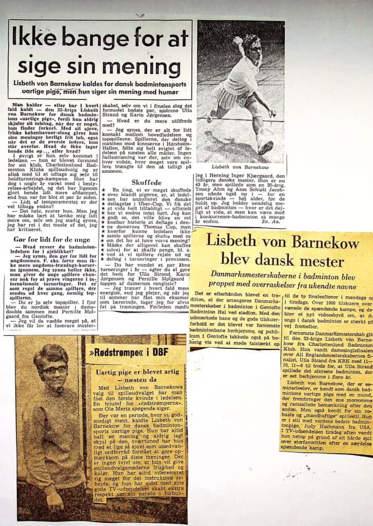 Dyk også ned i forbundsbladet ”Badminton” og læs mere om DM i badminton 1966 hvor Lisbeth von Barnekow vinder sit første DM i damesingle, og bliver udtaget til landsholdet i den traditionelle årlige landskamp mod England: