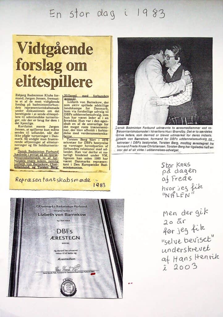 Jo – jeg fik min første pris - ” DBF`s æresemblem” i 1983.