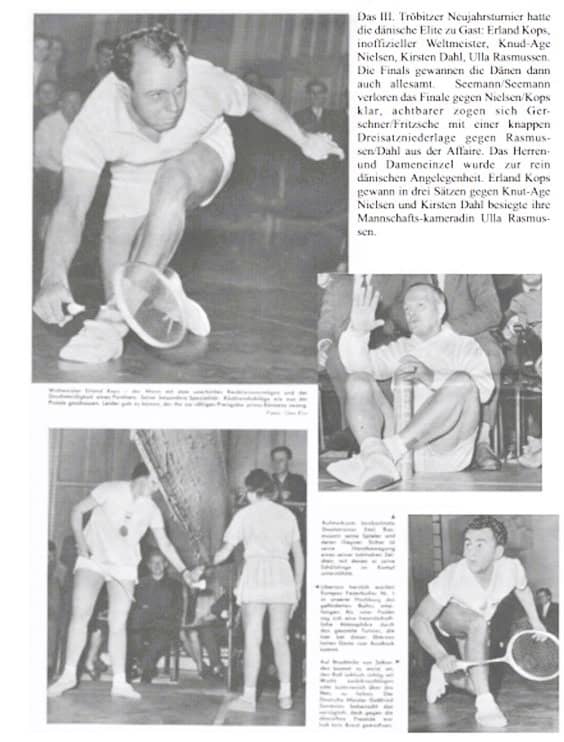 Den daværende fabrikschef for brunkulsminen i Tröbitz, Heinz Fritzsche, så også en badmintonkonkurrence for første gang på det tidspunkt med Doberlug-pionererne inden for sporten i det østlige Tyskland. Uger senere blev en tom maskinhal i brunkulsminen med ribbevæg, måtter og ringe til en sportshal. Heinz Fritzsche havde tegnet en badmintonbane på gulvet af entusiasme.