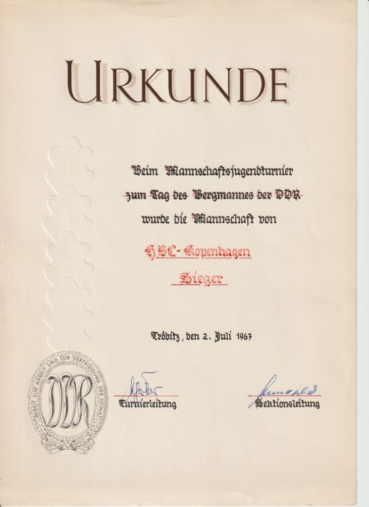 Vi HBC’ere havde gennem mange år nogle dejlige dage i Tröbitz sammen med flere af vores gode venner og bekendte fra tidligere besøg. Der gik endnu nogle år, hvor østtyskerne ikke måtte rejse ud, og hvor vi ikke så dem i internationale turneringer. Det lykkedes dog på et tidspunkt.